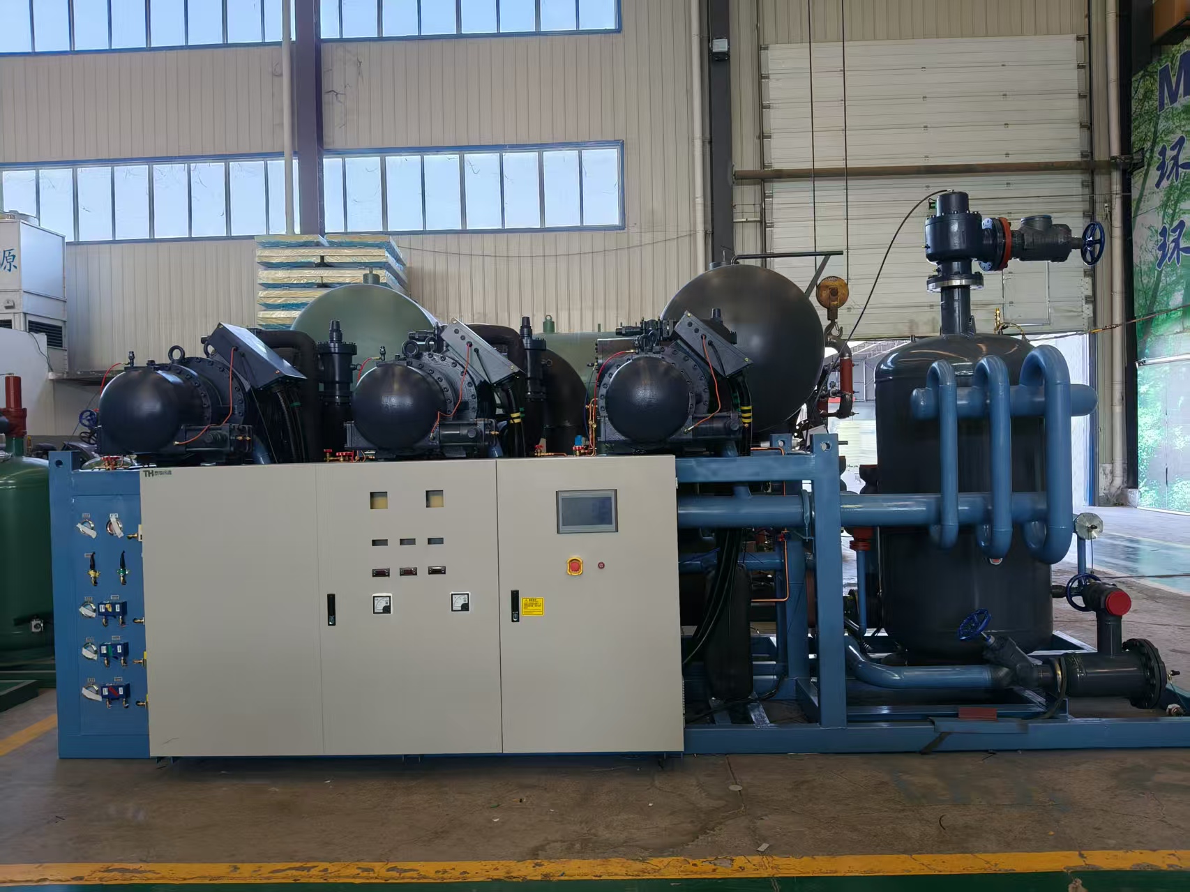 黄瓜网站在线观看公司生產的漢鍾雙級低溫三並聯製冷機組,采用的是西門子plc遠程控製係統,是一款高效環保的冷庫製冷機組,它采用三台單機雙螺杆機組並聯運行,可以實現更大的製冷量輸出,同時還能降低噪音和振動,提高運行的舒適度。這台機組適用於各種低溫冷庫,速凍冷庫等,有需要的老板,歡迎谘詢